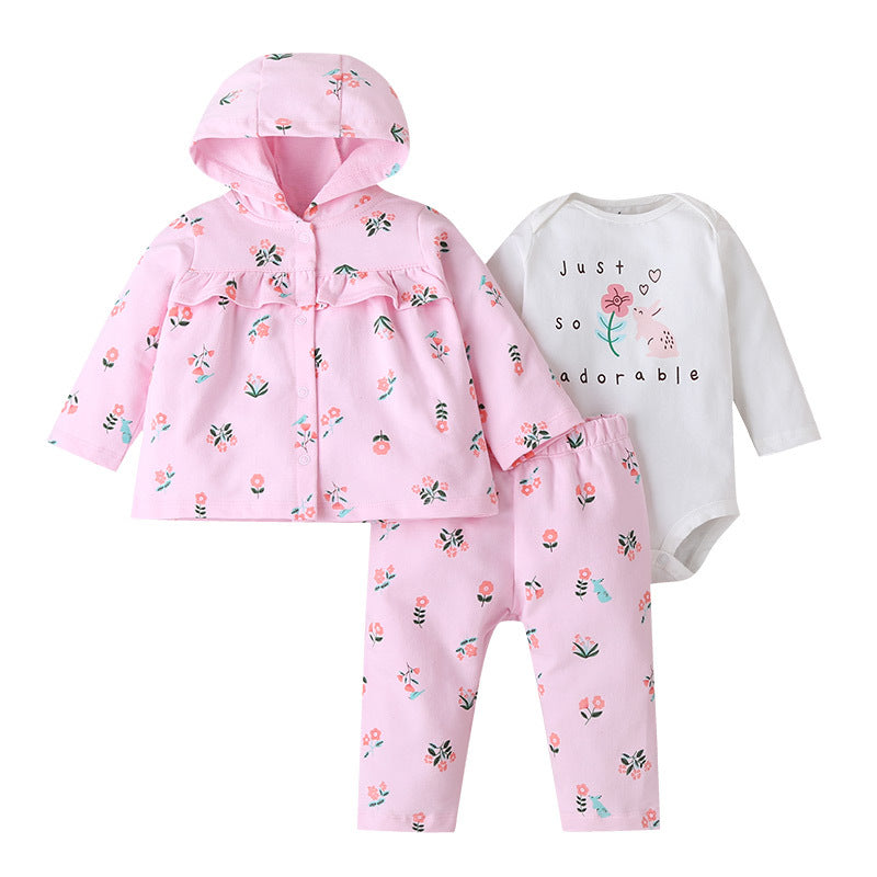 Cartoon Three-Piece Suit Baby Print Coat Romper Suit