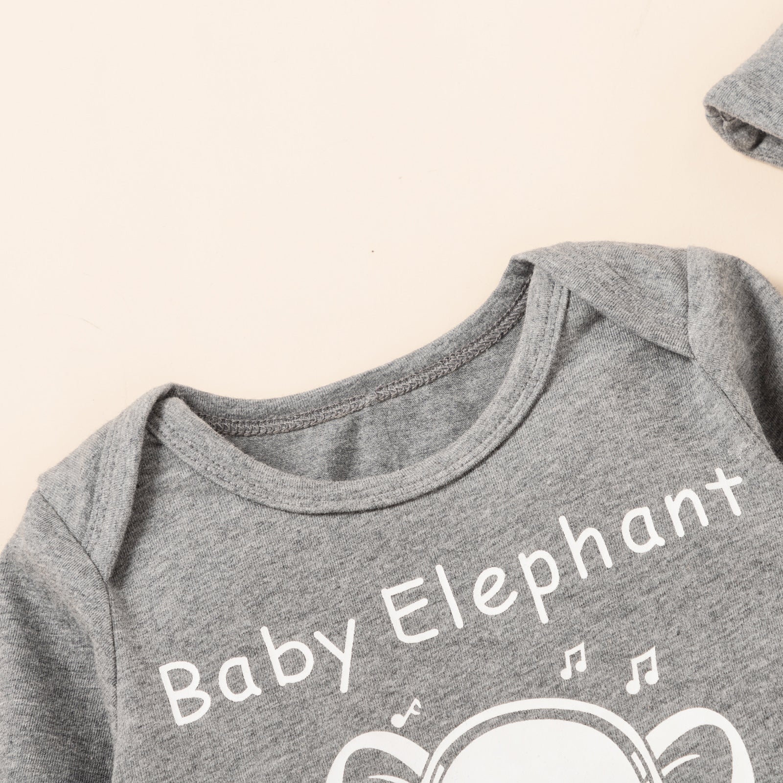 Children's Clothes Elephant Print Romper Striped Pants Hat