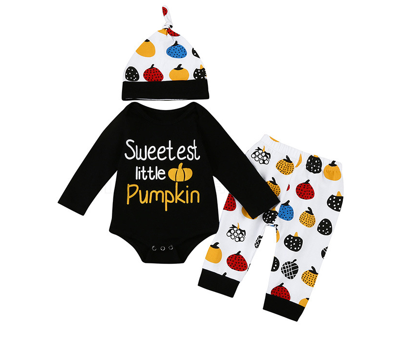 Children's Wear Amazon Halloween Baby Costume Pumpkin Head Letters Haber Set Three Piece Set