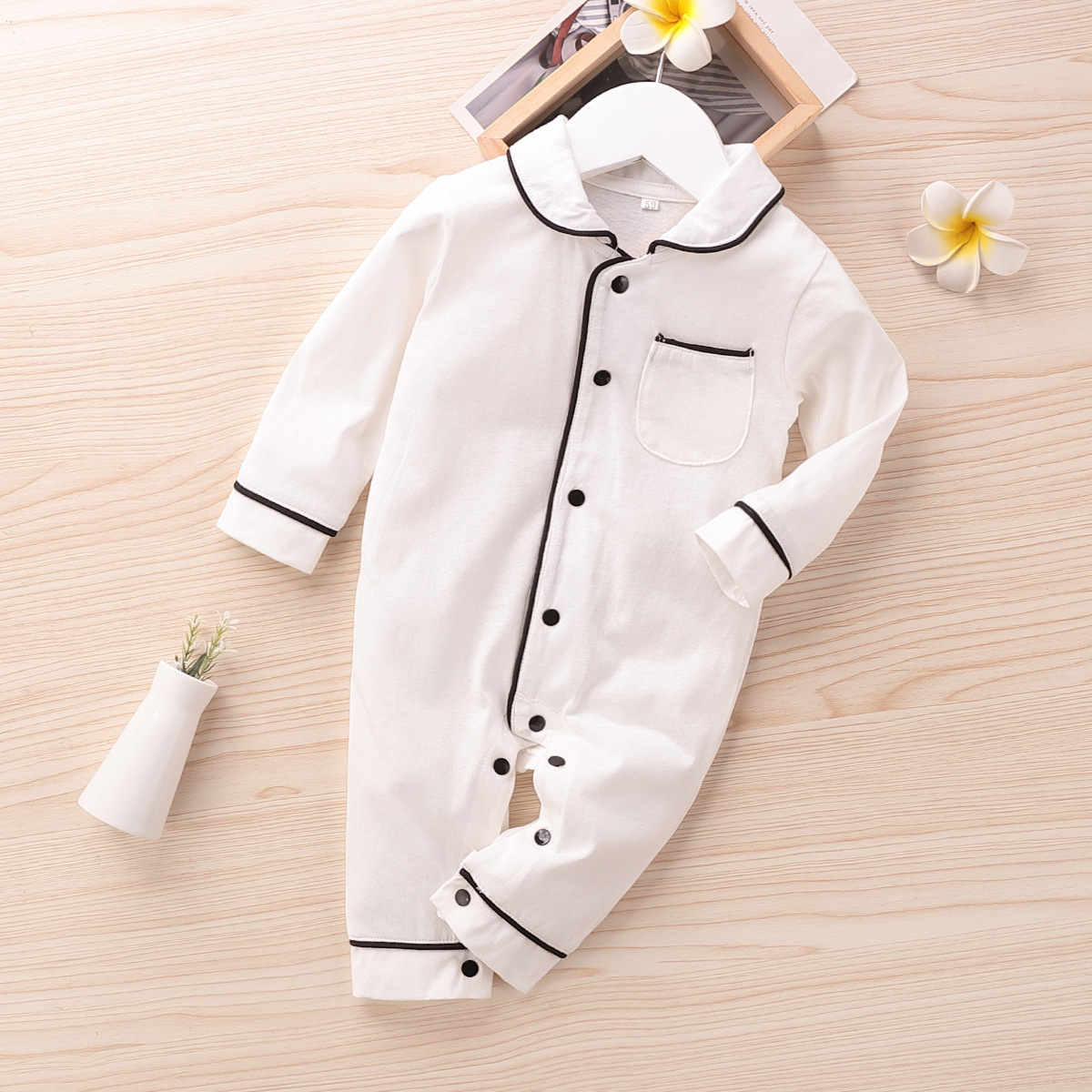 Spring And Autumn Solid Color Baby Button Bodysuit