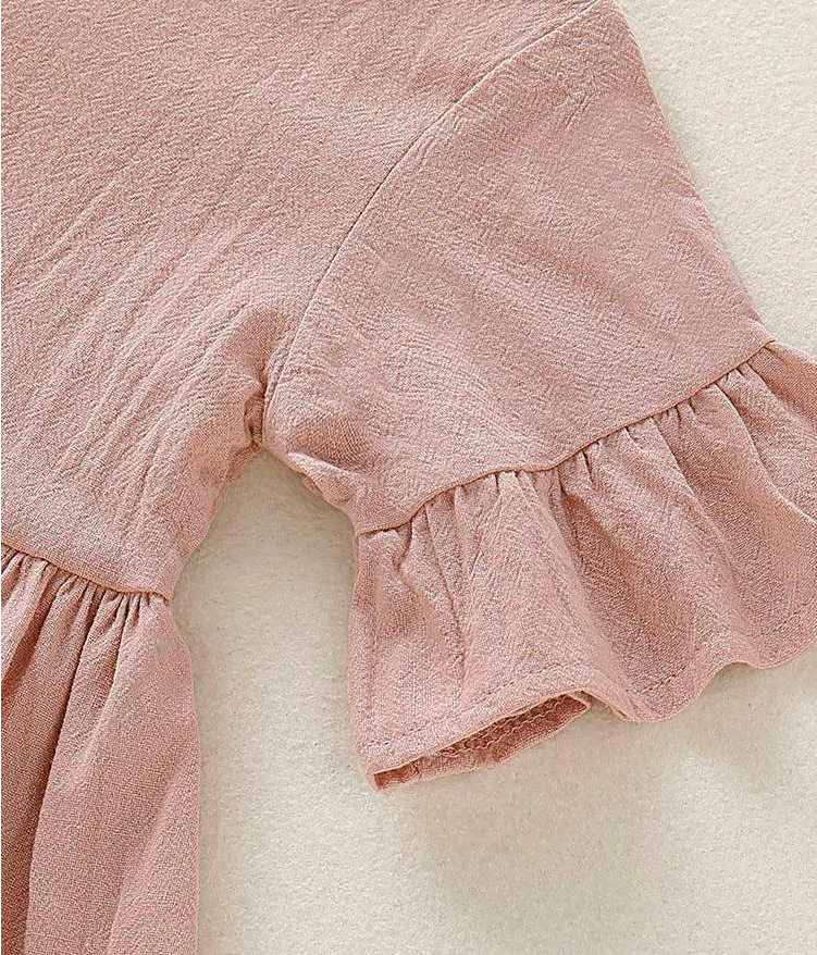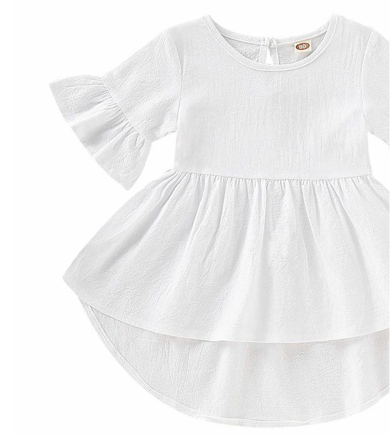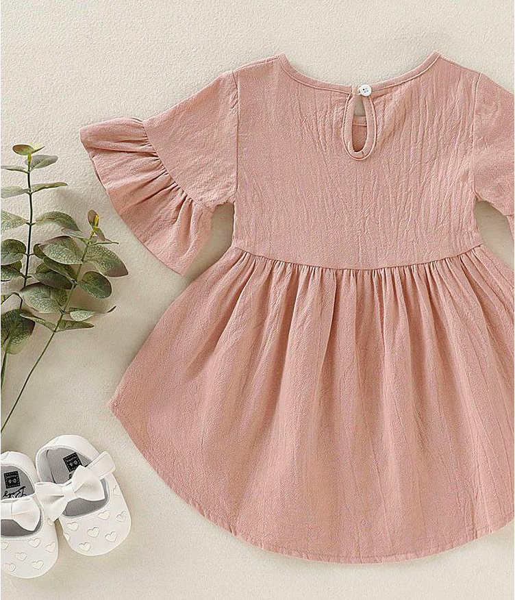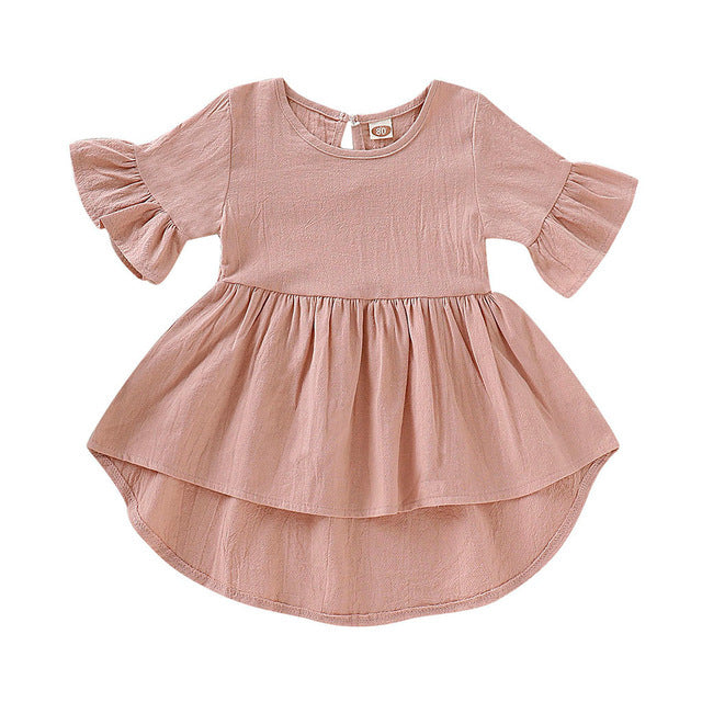 Toddler Kids Baby Girls Flare Short Sleeve Cotton Solid
